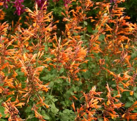 Introduced by Thompson & Morgan, a hybrid of Agastache coccinea x Agastache aurantiaca is also marketed as ‘Navajo Sunset’, this free flowering perennial has been awarded the Fleuroselect Quality Mark. Suitable for the border or grown in containers, the foliage is both beautiful and functional, the anise scented leaves can be used to make tea.