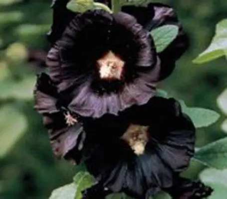 ‘Nigra’ is a term used for ‘black’. The Black Hollyhock was described as early as 1629 by John Parkinson, as being ‘of a darke red like black blood’, an apt description for the large single flowers that grace this plant in June and July. The Boston nurseryman, John B. Russe, offered seeds of ‘Black antwerp hollyhock: Althea nigra’ in a forty-two-page catalogue published in 1827.