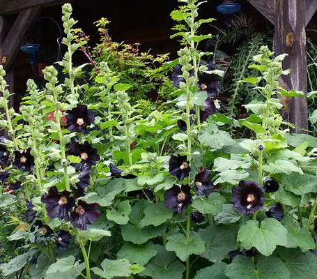 Hollyhocks are almost as easy to grow as sunflowers and would probably be grown as often if more gardeners were aware of their good nature. Unlike many other dramatic flowers that are simpler to admire than to actually grow, hollyhocks need no coddling. Their character is superior to their reputation and they are best praised by being grown.