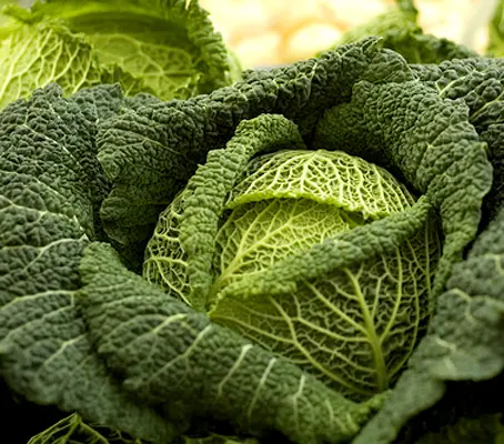 Easily recognised by its crisp, puckered, dark green, ridged leaves savoy cabbage has a milder flavour and a softer texture than other cabbage types, it has a pale tender heart and needs only brief cooking.