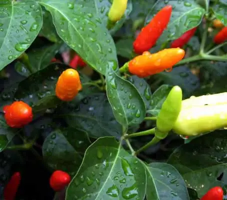 The tabasco plant can grow 120 to 180cm tall (4 to 6ft) tall. Very prolific, they produce up to 100 pods per plant. The slender fruits grow upright and are 3 to 4cm (1 to 1½in) long. They mature from yellow to orange to red approximately 75 days after transplanting.