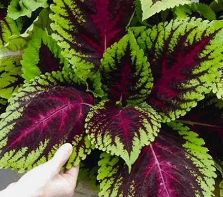Grown for its outstanding foliage colours, the Kong series of coleus boasts extremely large leaves with irregular edges, each leaf is easily as big as your palm, and probably twice as large as the next biggest Coleus you can buy.