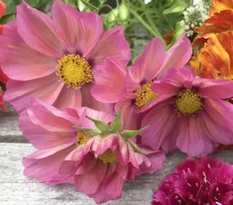 This unique variety of cosmos is early to flower with unusual blooms that have a magical iridescence. Magenta, rose and raspberry pinks are overlaid with an apricot- peach undertone. that changes through the day as the light changes. In addition, as each flower matures the colour fades to a warm, antique rose. This beautiful variety works well in creating a gentle vintage look in the garden or vase.