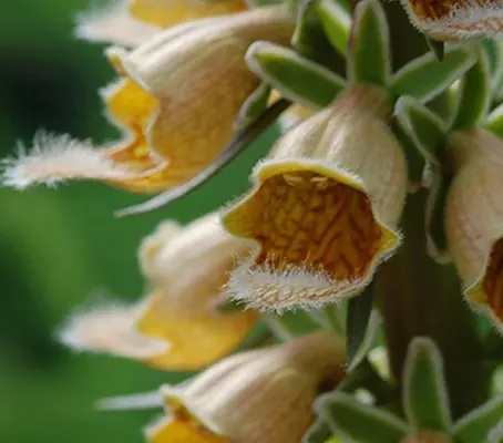 The name Digitalis is a latinisation of the German name ‘fingernut’ from the Latin digitus meaning ‘a finger’. The flower resembles the finger of a glove. The English name comes not from foxes, but from the phrase ‘folks’ gloves’ because it was thought that the flowers were used as gloves by fairy folk. Another common name is “Fairy Thimbles”
