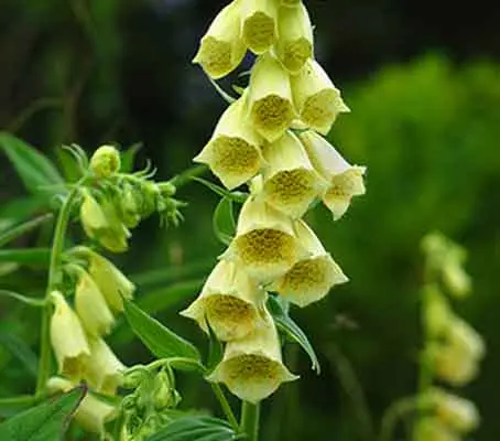 Digitalis grandiflora, grows to around 80 to 90cm (32 to 36in) tall. This compact plant does not need staking and is a good choice for the border or woodland garden.