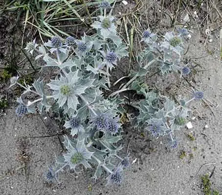 Sea holly roots were collected on a large scale in the 17th and 18th centuries in England. They were candied and known as eringoes eaten as sweetmeats and regarded as an aphrodisiac obviously appreciated by Falstaff,