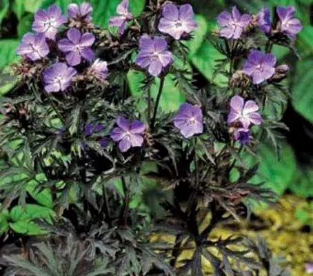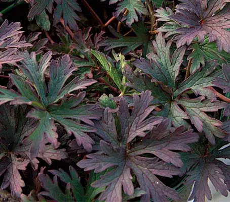 Dark Reiter is beautiful geranium with finely dissected reddish-purple foliage. This perennial does best in full sun to partial shade the foliage turns a deeper purple in a sunny location Growing to 38cm (15in) tall by as wide, it produces delicate violet-blue flowers in spring.
