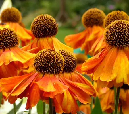 If there’s one plant that can inject a little razzle-dazzle into the border during our gloomy late summers it is Helenium. From late July to September, Helenium autumnale ‘Helena’ blooms with masses of vibrant blooms in a spectrum of rich colours from gold to mahogany red. Each flower head has up to twenty reflexed petals some edged with yellow.