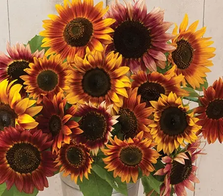Sunflower ‘Autumn Beauty’ is an classic variety. It produces numerous long-stemmed flowers from summer to late autumn in a variety of solid and bi-colour bright warm colours including golden yellow, bronze, brown and burgundy.