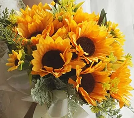 Handle sunflowers gently, although they may appear robust, the petals and more delicate parts may bruise. For the vase, cut the fresh flowers in the morning just after they open, but wait until the sun has dried the dew. Remove leaves that are low on the stem, leaving just two or three higher up, near the flower’s face. Place the flowers in a bucket filled with water, and leave them to stand for several hours in a cool room before placing in a vase.