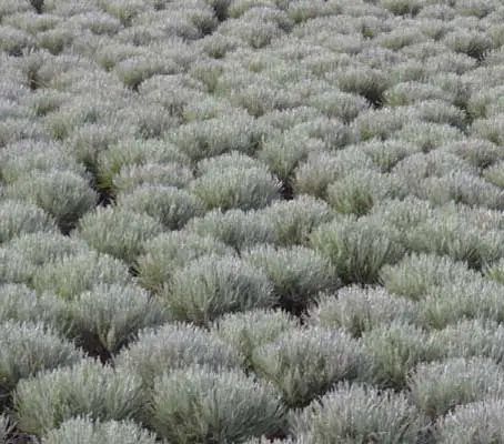 Normally a dusty grey, new flushes of growth in spring take on a greener appearance. Helichrysum looks very similar to a Lavender in its early leaf stage.