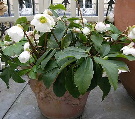 Despite the species name “niger” meaning black, it bears an abundance of pure white flowers. The name refers to the colour of the roots; it was applied in 1753, although the plant had previously been long cultivated in the UK even then.