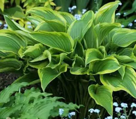 Combine variegated Hostas with Arum italicum Pictum or other variegated leaved plants. Other companion plants include Epimedium, Acorus, Astilibes, Berginia, Brunnera, Primula, Pulmonaria and, of course, Ferns