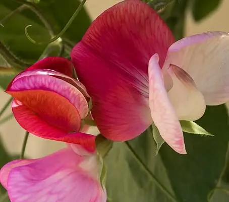 Compared to the wild or original sweet pea varieties, the Grandifloras usually have clearer colours on the petals, they tend to bear more flowers on the stem and are more fragrant.