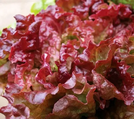 Dark red with high bolting and weather tolerance. Lettuce ‘New Red Fire’ is an award winning variety that is a popular choice amongst growers for its excellent colour and taste. The attractive frilly-edged, open leaves are crisp and sweet. Light green at the base, the tips are deeply flushed in wine red.