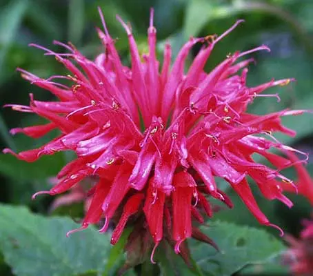 A tea from the spicy leaves of this plant is known as Oswega Tea and used to improve digestion. Both leaves and blooms contain thymol-related antibiotic-antiseptic compounds.