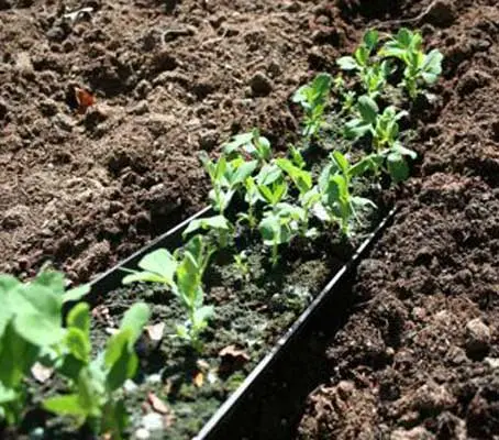 Place the guttering in the greenhouse or cold frame. Keep the compost moist and transplant into the garden once the seedlings have established. Dig out a shallow trench and gently slide the pea seedlings into it. Water and cover with cloches to encourage growth. Autumn and early spring sowings will benefit from cloche protection.