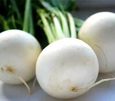 Radish ‘White Hailstone’ is a brilliant white, sweet, white globe radish. Especially crisp, tender and with a mild flavour that keeps well once pulled. not too spicy and stay mild even as they grow larger.