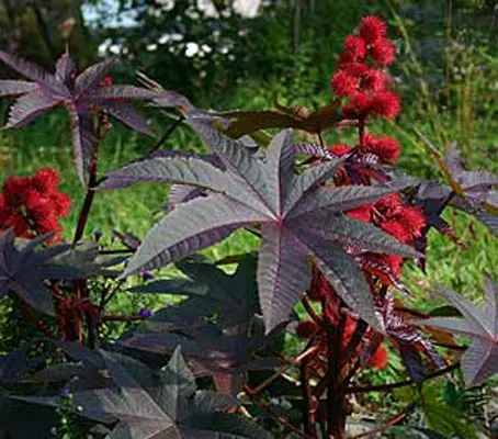 Ricinus is planted as a hedge plant in India, as a shade plant in Costa Rica and for sand dune stabilisation in Libya. When grown outdoors it is said to rid the garden of moles and nibbling insects.