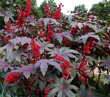 Ricinus communis is indigenous to the south-eastern Mediterranean Basin, Eastern Africa, and India, but is widespread throughout tropical regions and widely grown elsewhere as an ornamental plant.