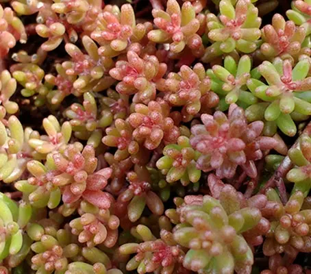 Occasionally found with the name of Coral Carpet Sedum, the name refers to the small succulent leaves that emerge a salmon-orange colour changing to bright green in summer.
