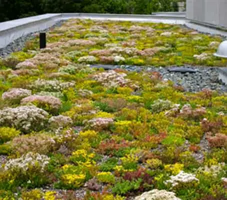 Green roofs generally use sedum and other alpines to provide a natural finish to a roof. Sedums are at home in poor soil and have drought-tolerant capabilities that are second to none. The plants are very hardy, and can withstand great ranges of temperature and weather.