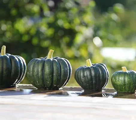 Harvest in the midst of their transformation for funky autumn displays or wait for them to ripen completely for maximum flavour, which is nutty and sweet with hints of chestnut.