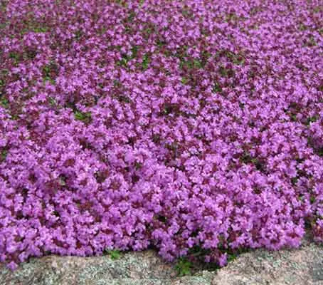 There are very few ground covers that can be walked-on, but creeping thyme is one of them. It is suitable as a lawn substitute in small areas, an ideal ground cover to use between stepping stones or near to patios and walkways. Hardy to -34°C (-30°F) with good drought tolerance, these low maintenance plants don’t require mowing, watering or care, and can take a lot of abuse. When you step on them they emit a lovely fragrance.