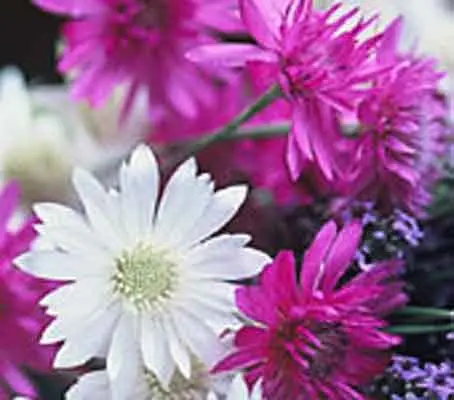 • Ammobium alatum (Winged Everlasting) — white flowers with a yellow eye, delicate filler in fresh and dried work.