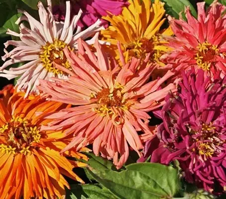 So named for their unique spiky appearance, Cactus Flowered Zinnias have semi double, large 10 to 15cm (4 to 6in) blooms each with re-curved, quilled and twisted petals that form interesting textures in the garden or the vase. ‘Giant Cactus Flowered Mix’ bloom in a wide mix of bright colours including gold, orange, crimson, scarlet, apricot, coral, carmine, salmon, lilac, rose, pink and white.